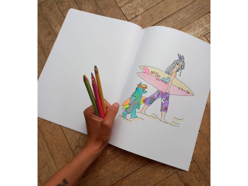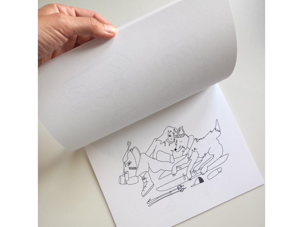 Uvnitř najdete 14 listů prémiového papíru Munken Lynx 150g, který se hodí pro fixy, pastelky i vodovky, protože neprosákne